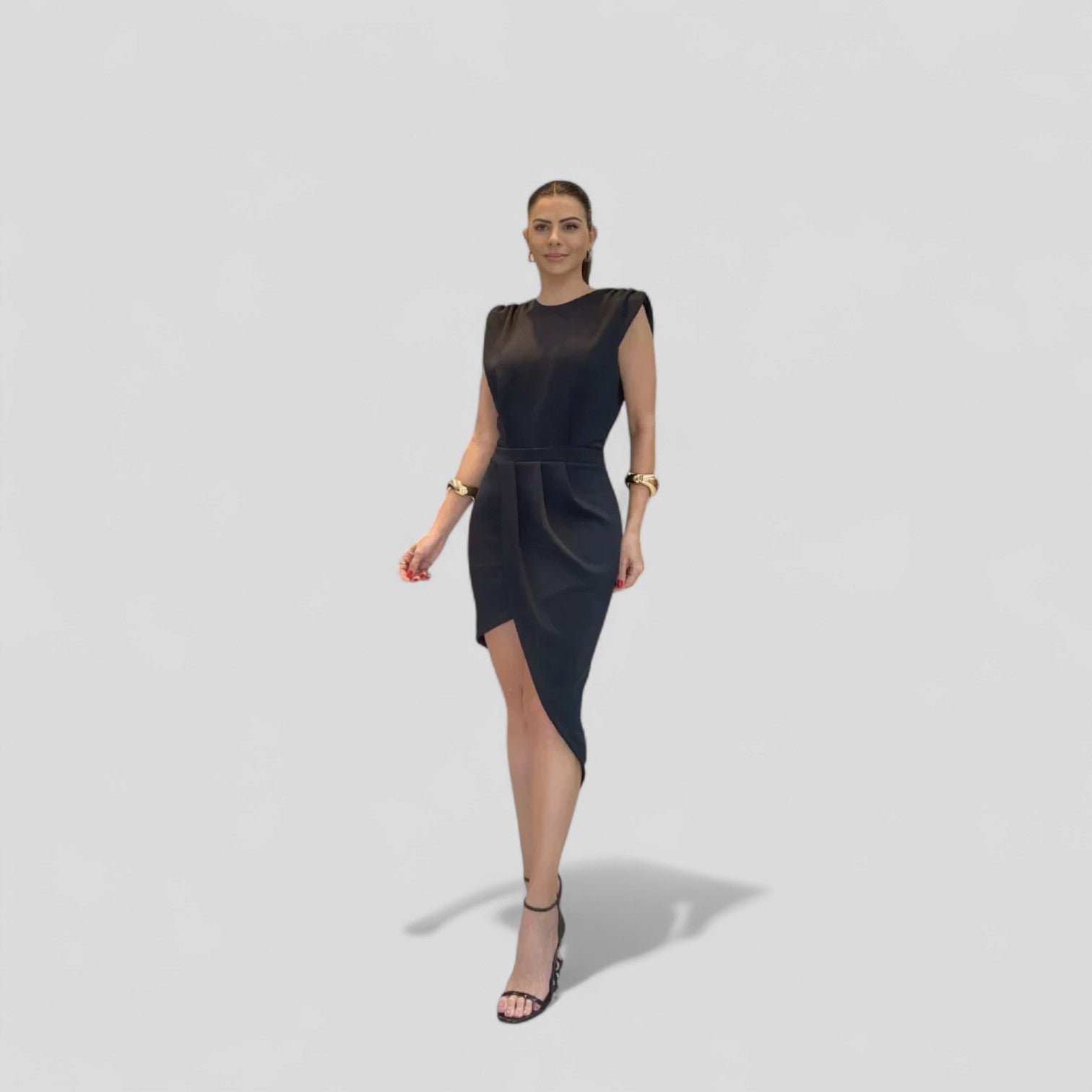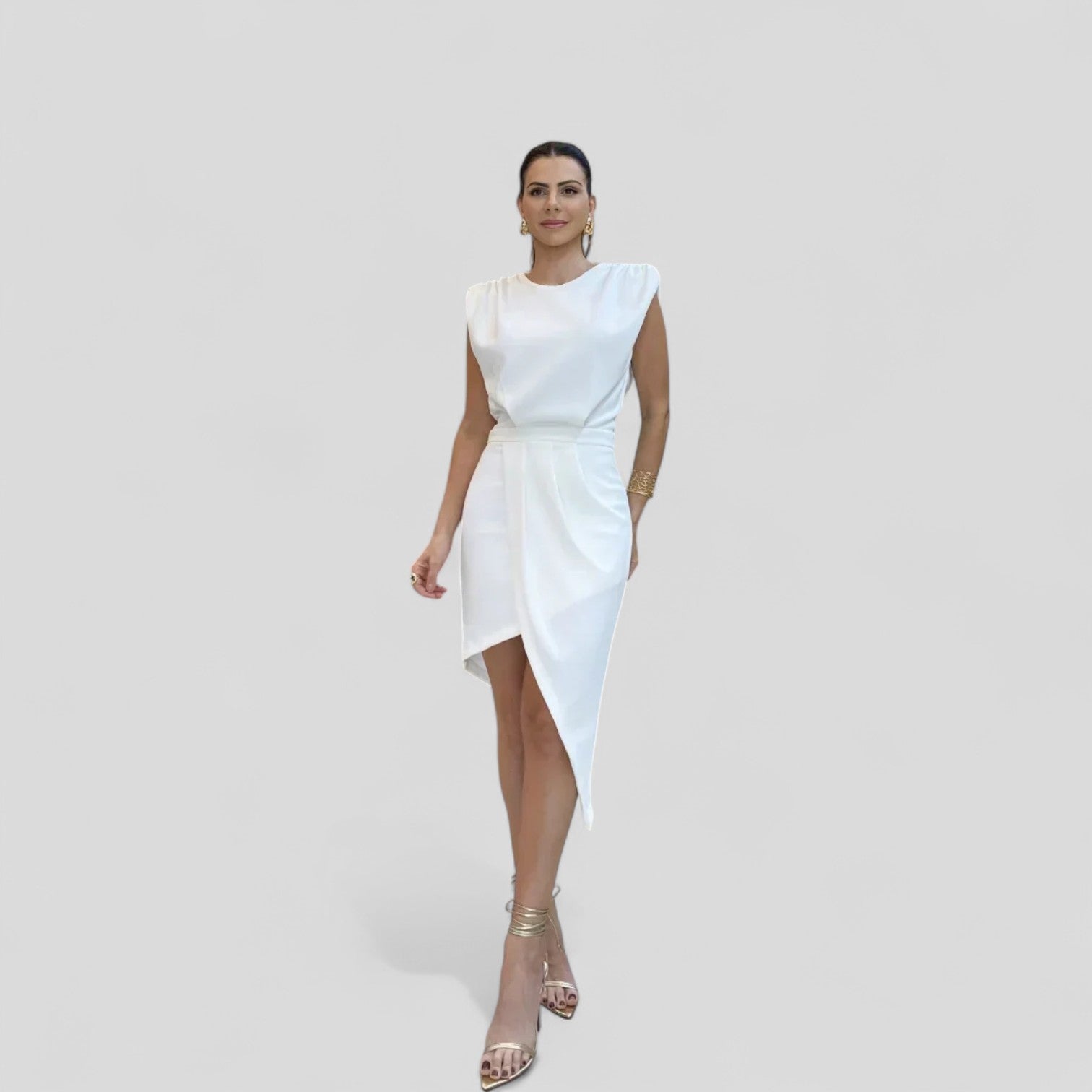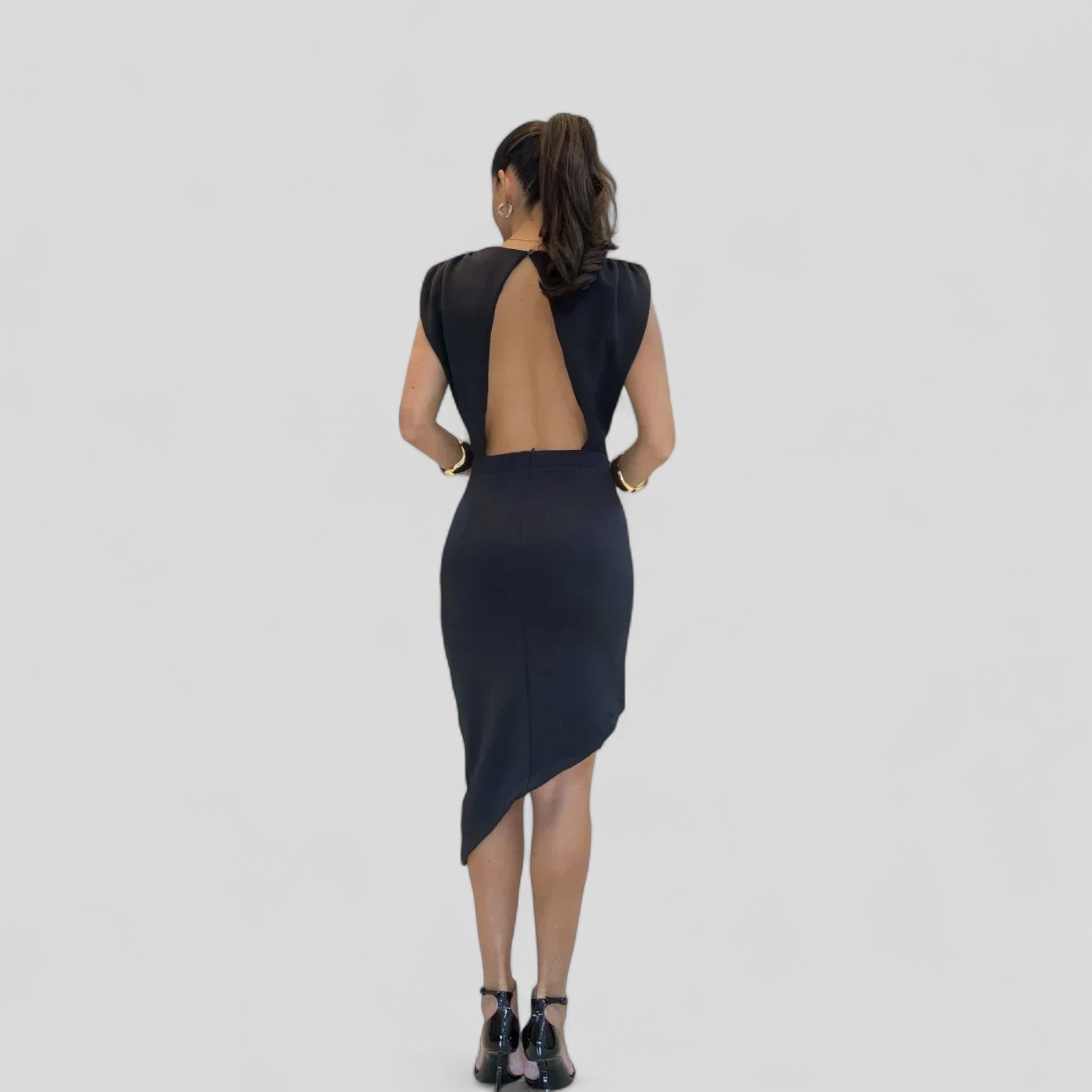 Vestido Ajustado Moderno con un diseño que destaca por su línea de hombros distintiva, proporcionando una silueta entallada y un dobladillo asimétrico. Este vestido cuenta con una espalda abierta y cierre de ranura, añadiendo un toque femenino al diseño minimalista, perfecto para diversas ocasiones. Ideal para: